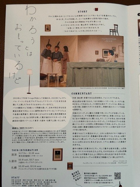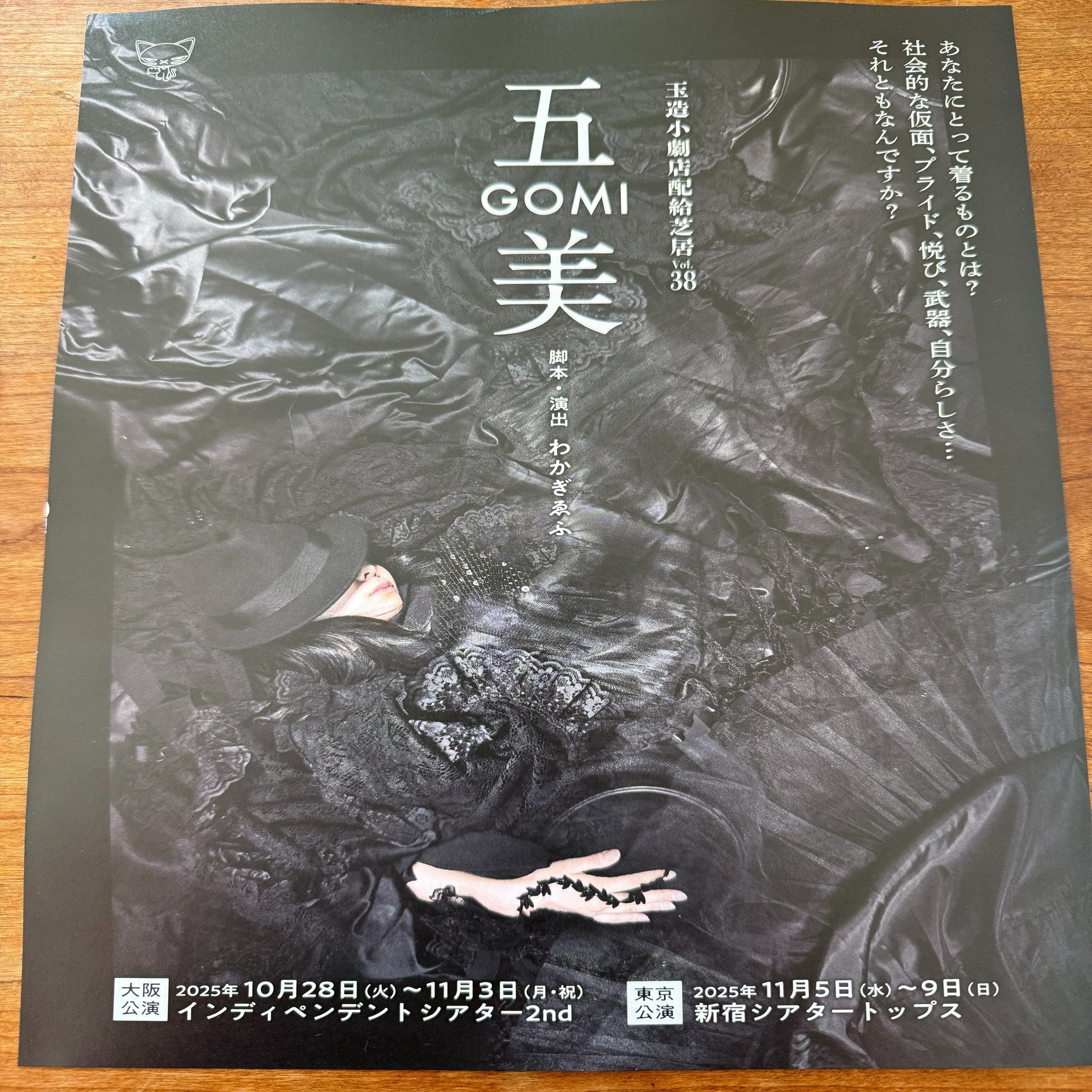 人間が衣服をまとうという本質的な価値は何なのか?廃棄物問題は温暖化と同じような私たちの原罪なのか?笑いながら、本作をみながらそんなことを感じさせてくれる。強いテーマ性をもって切り込んでいかない仕立ての品の良さがわかぎさんはじめみやさんの演技などの円熟味があるからこそ生まれ出てきたものなのだろう?上演時間1時間50分。大阪公演11月3日まで、その後、東京公演が新宿シアタートップスで11月5日から9日までです。にゃあああ!詳細は以下、https://tama-show.jpn.org/ #