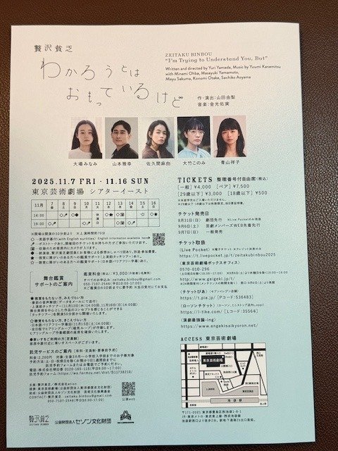 「わかろうとはおもっているけど」贅沢貧乏 (@シアターイースト)作・演出:山田由梨 ![]()